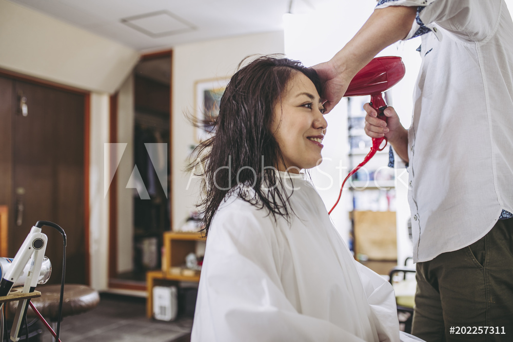 カウンセリングで決定したヘアスタイルを元に、お客様の髪の癖や髪質、ダメージに合わせて、カットやカラー、パーマを行います。